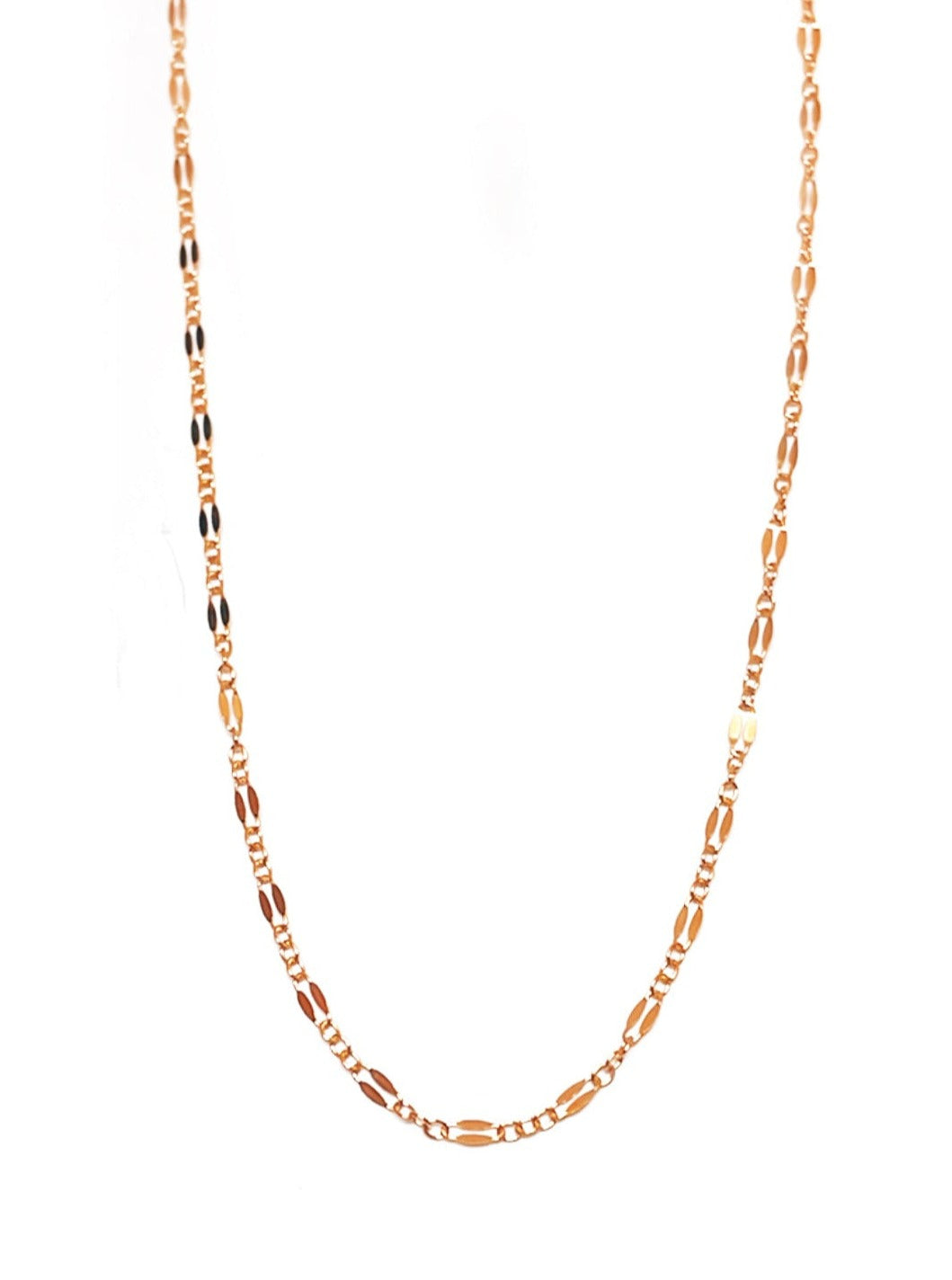 14K Rose Goldfill dapped chain in 16 or 18". This delicate chain reflects light off of the flattened elongated links. Great for layering with longer necklace.