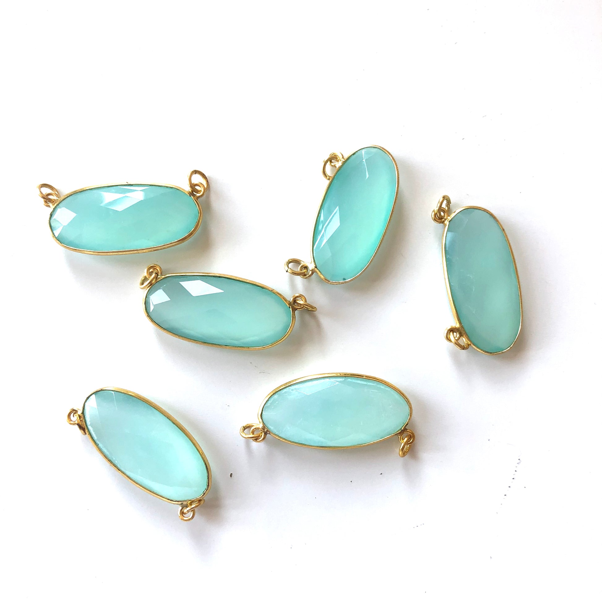 2 Pieces - Gold Plated over Silver Bezel Pendants Aqua Chalcedony Oval