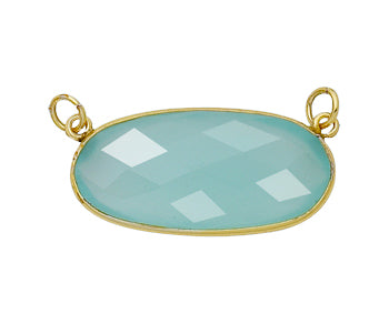 Gold Plated over Silver Bezel Pendant Aqua Chalcedony Oval 30X14.5mm