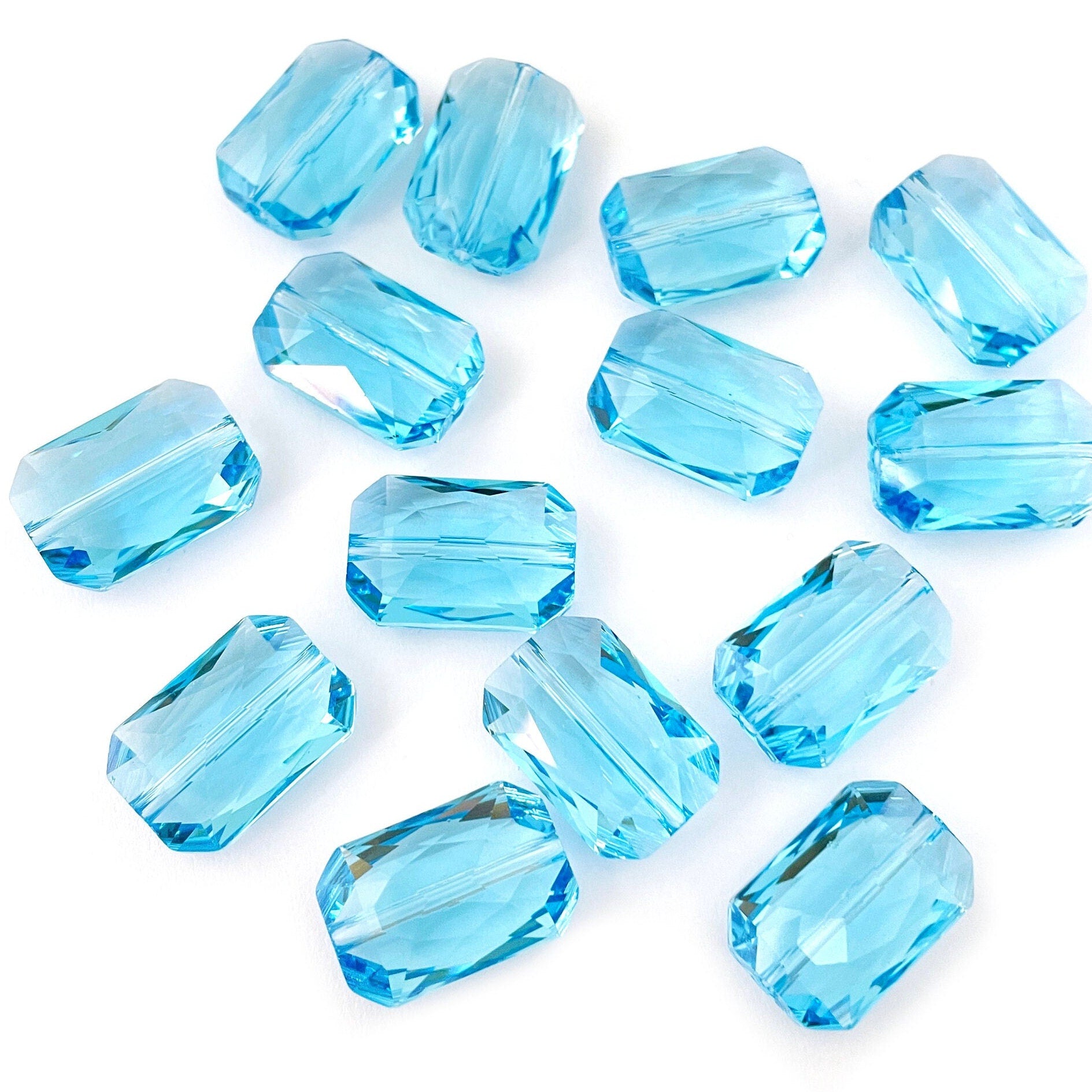 7 pieces of 18mm Aquamarine 5515 Emerald Cut Swarovski