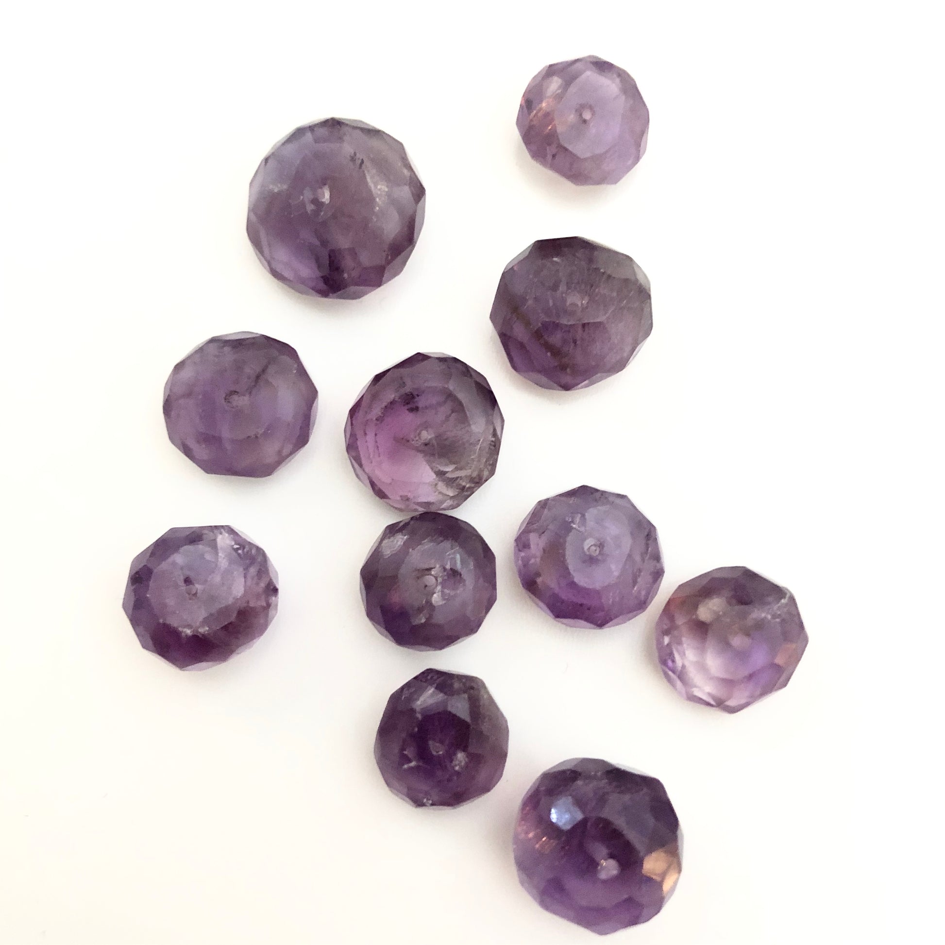 Large amethyst Rondelle beads. Faceted and various sizes. See photo for size range. Some inclusions.