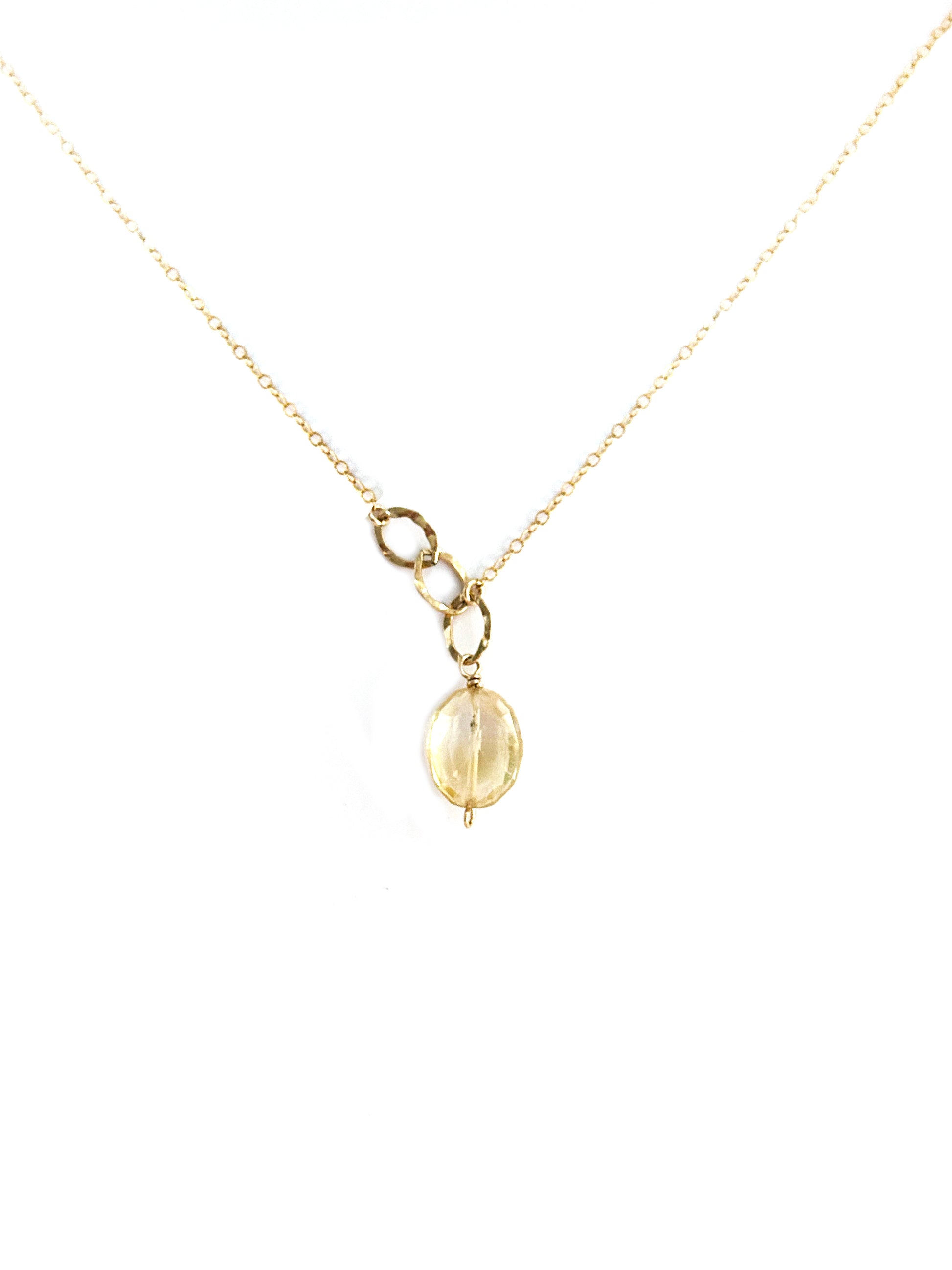 No two of these gorgeous faceted citrine oval nuggets are the same. Dropped off 14K Gold fill chain with textured link accent. Approximately 17" end to end. Limited availability.