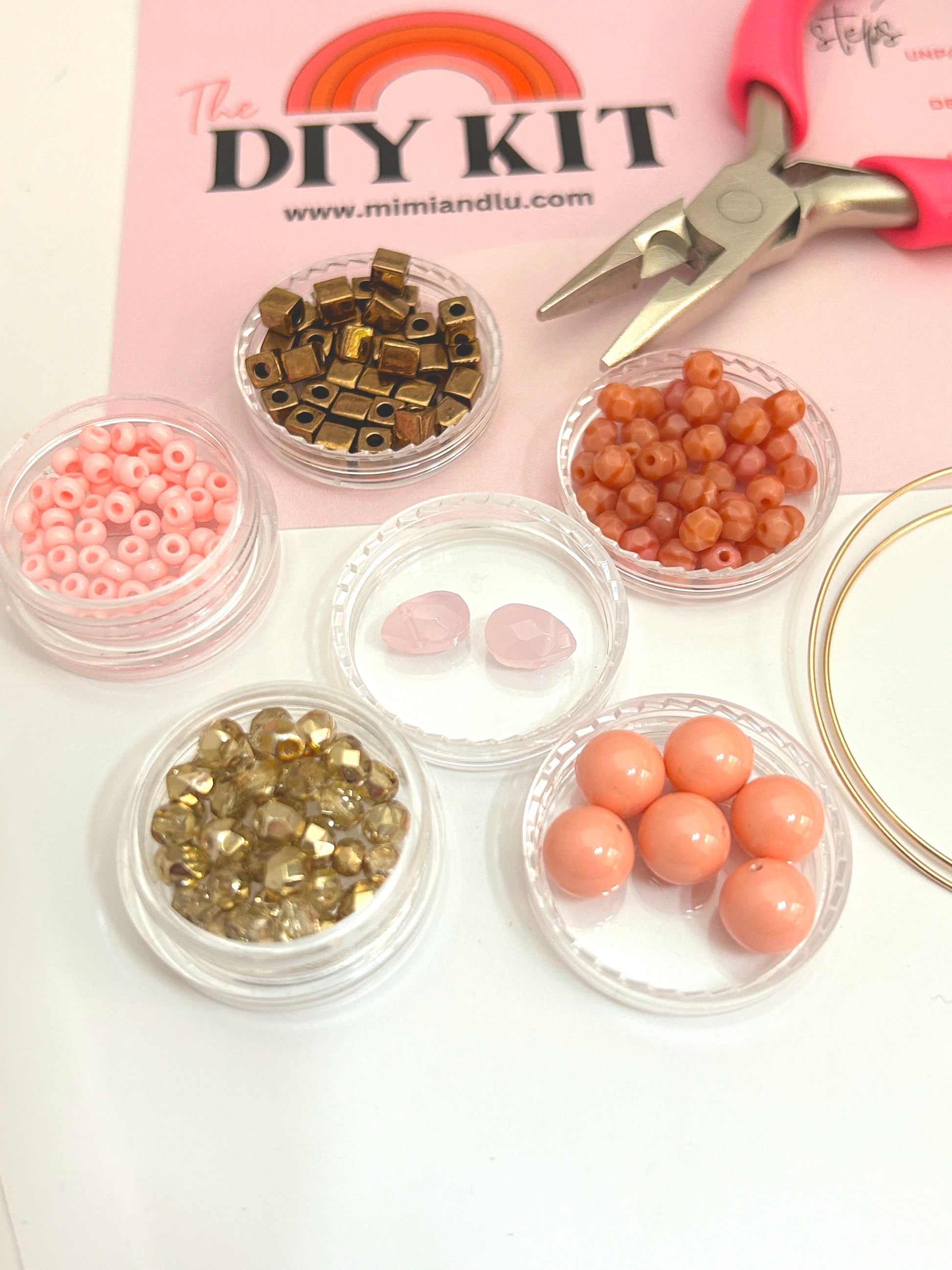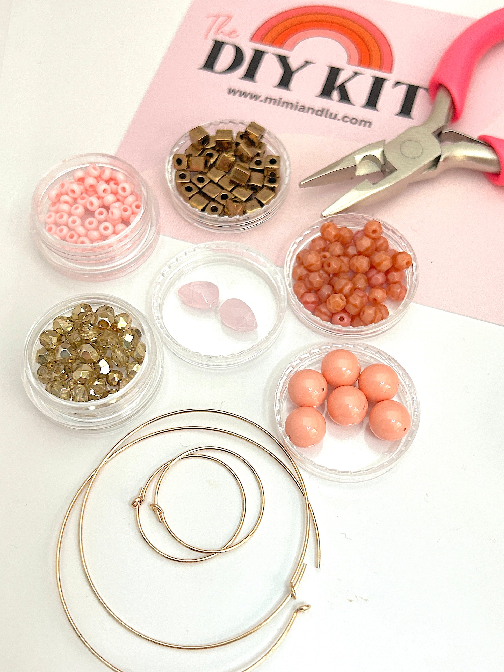 This DIY Just Peachy beaded hoops kit features a selection of beads and drops in peach and pink tones and Swarovski Pearl accents, to mix and match.