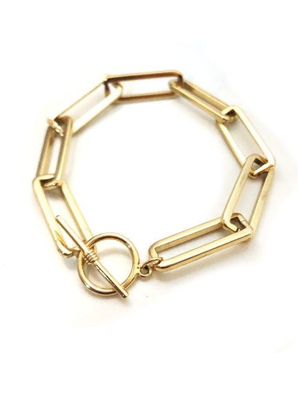 Gold dipped Paperclip Large Link Chain Necklace with Toggle Clasp. Approx 18"