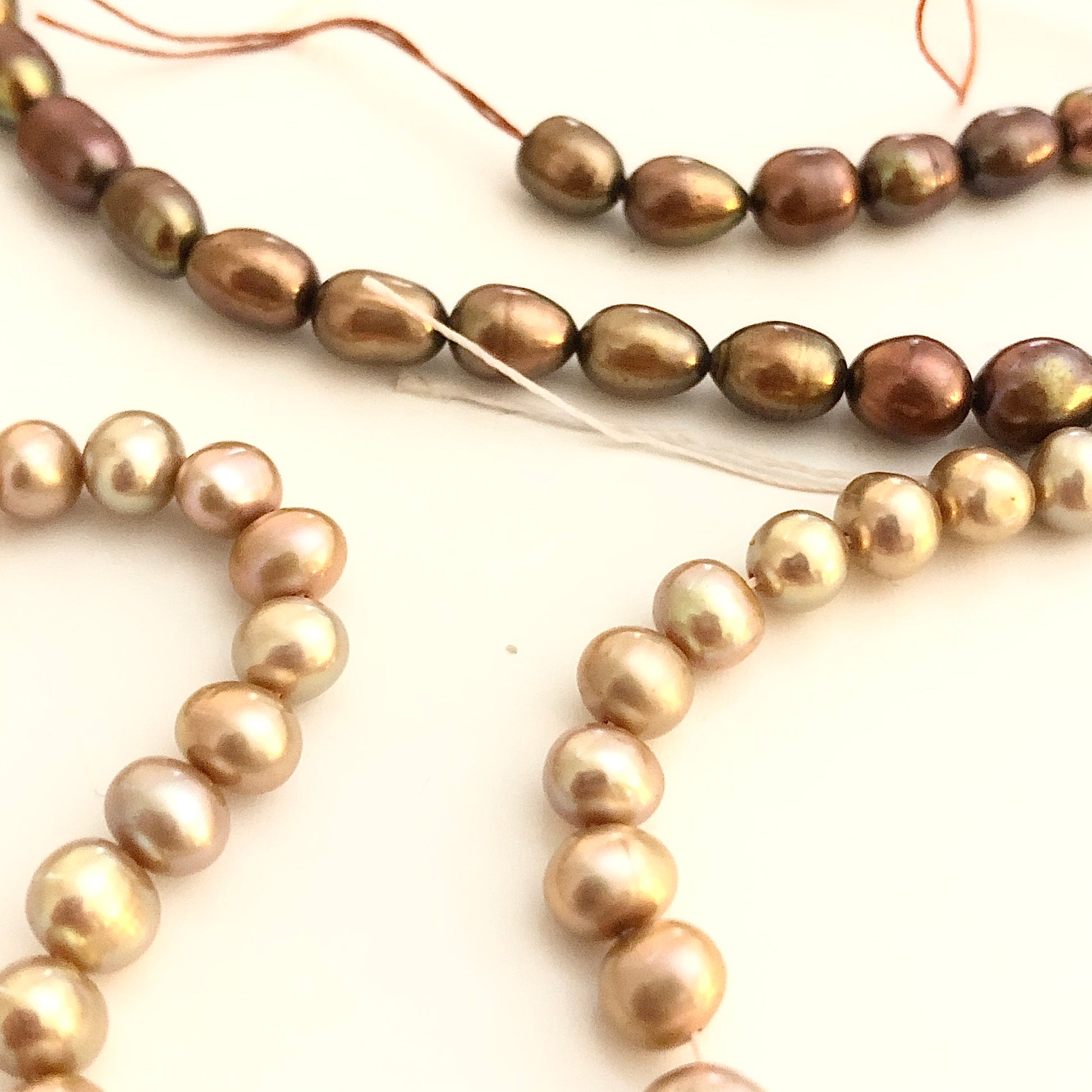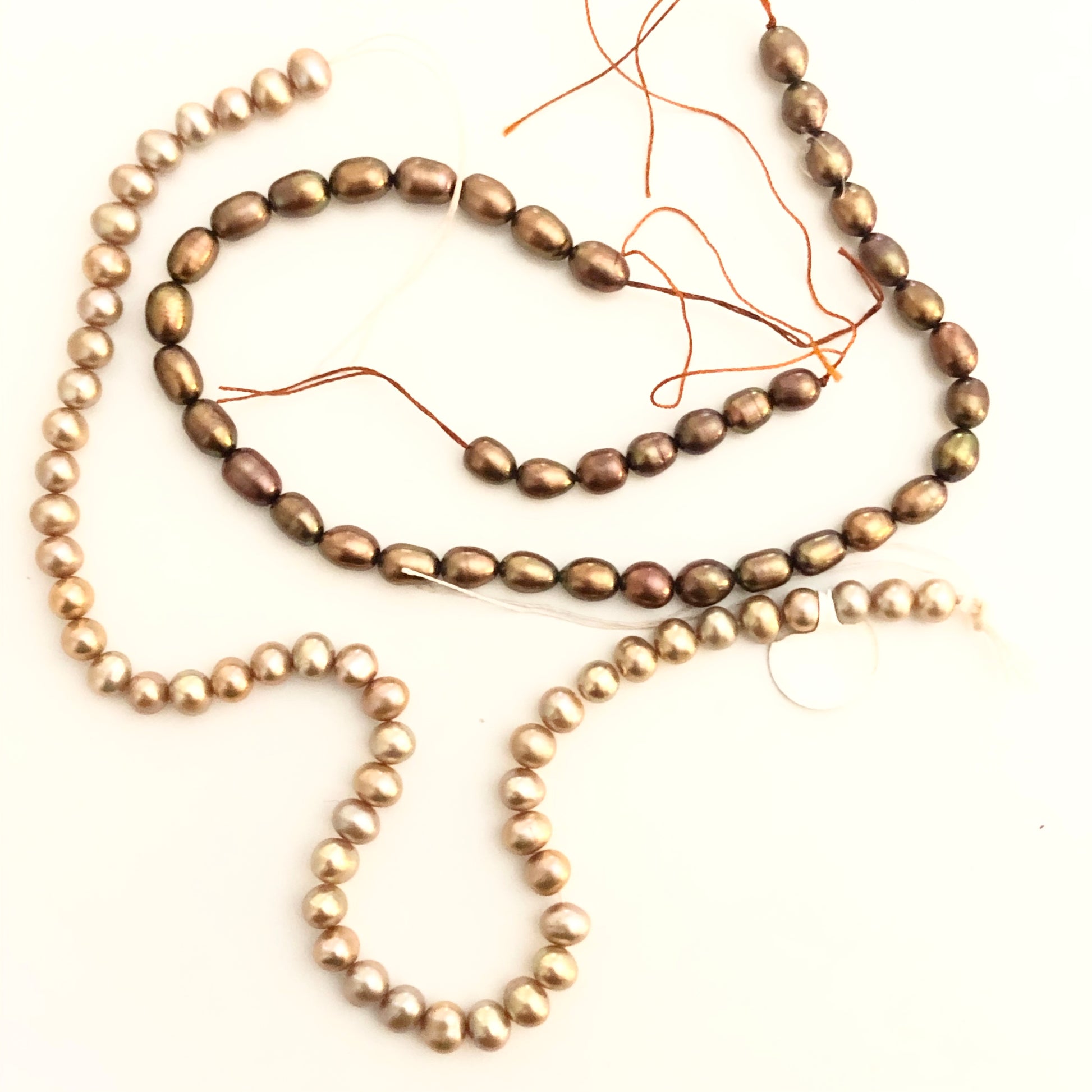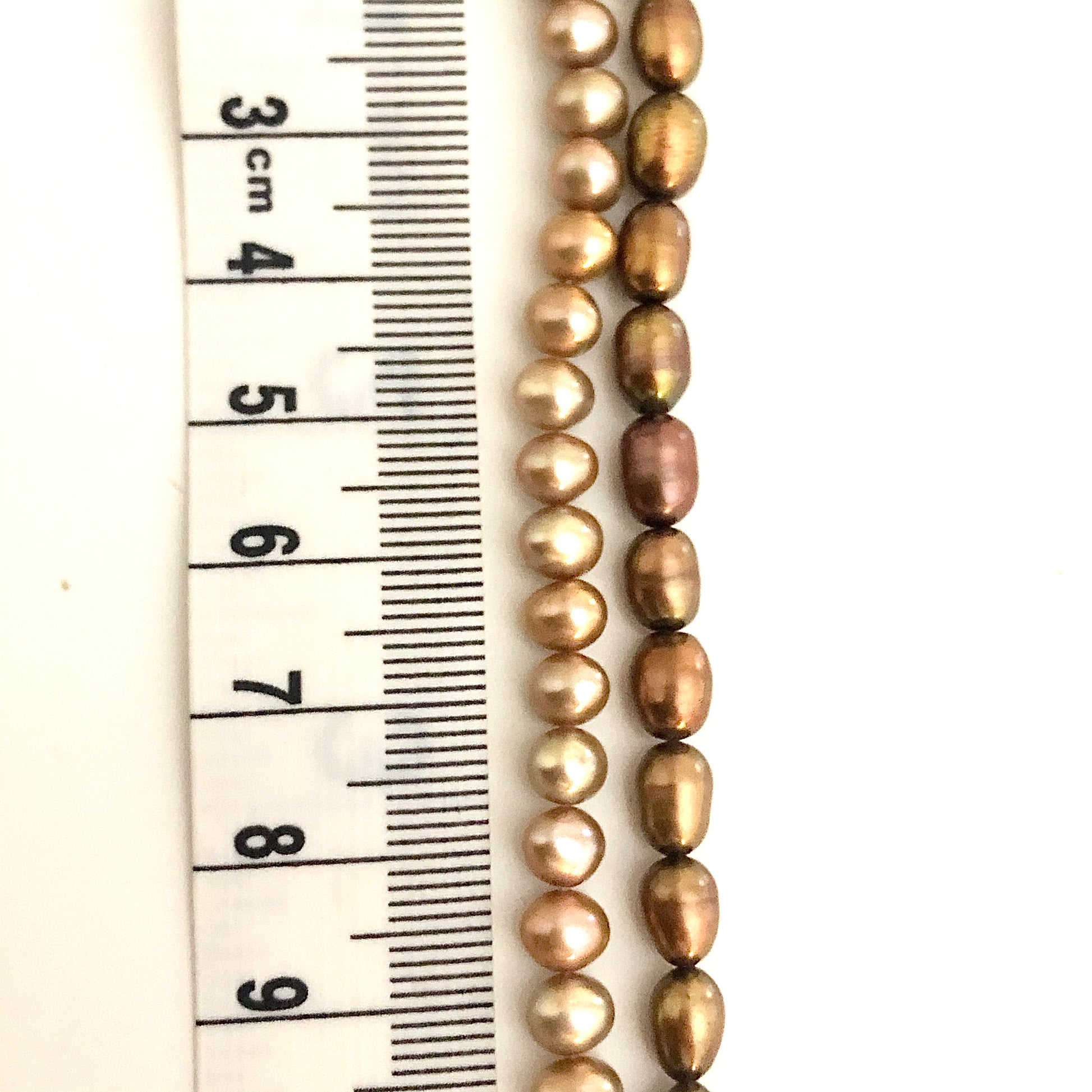 Champagne and Bronze color freshwater pearl beads. Both equal approx 11" strands and are SOLD TOGETHER. Price is for both strands. See photo for size.