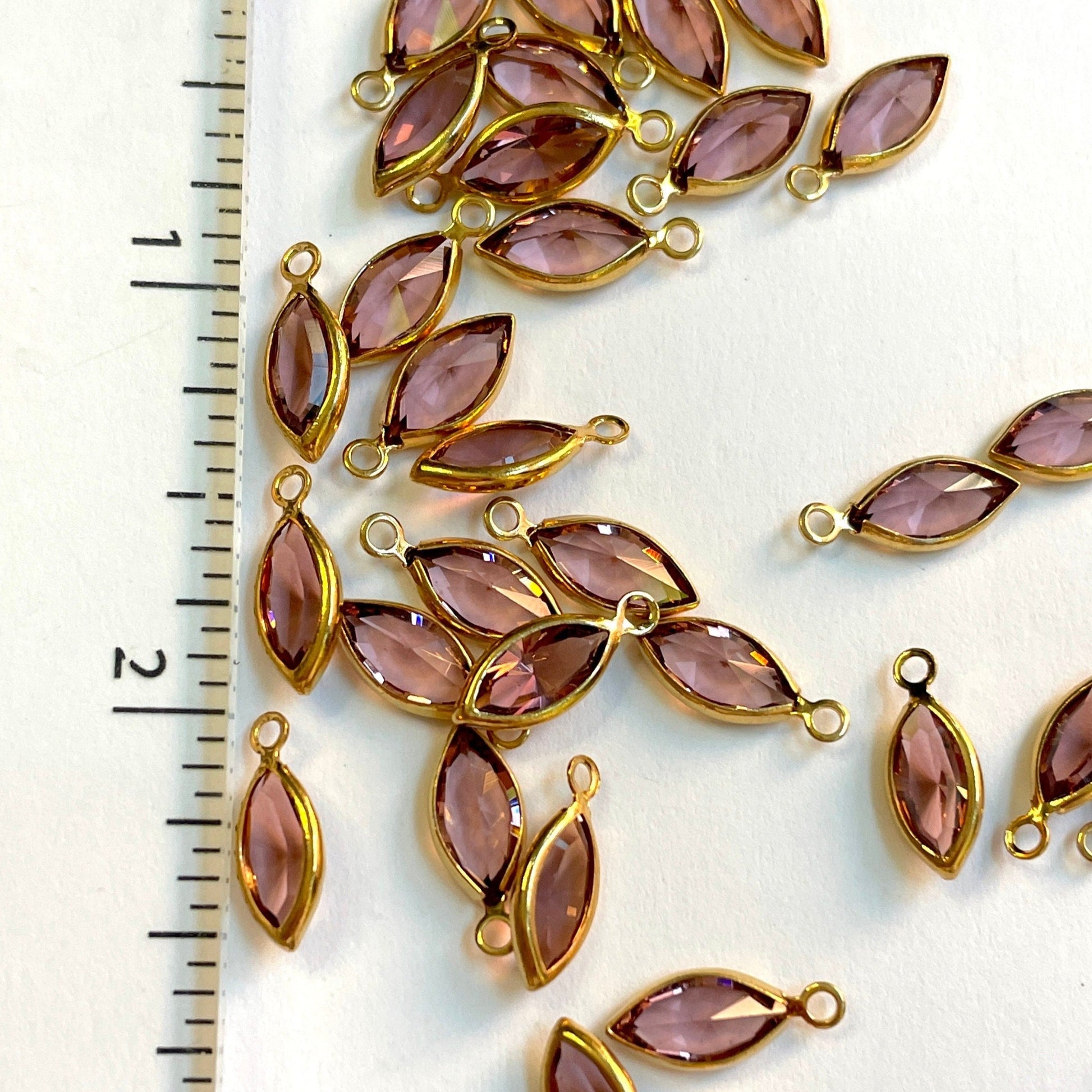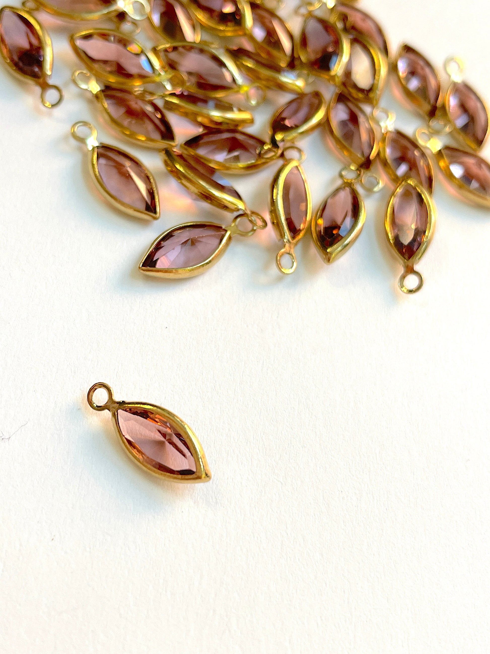 Swarovski 4228 Channel charm in Blush Rose with gold plated bezel. These were custom made by Swarovski for our company. Faceted, Pointed back. 10x5mm. Sold in sets of 25.